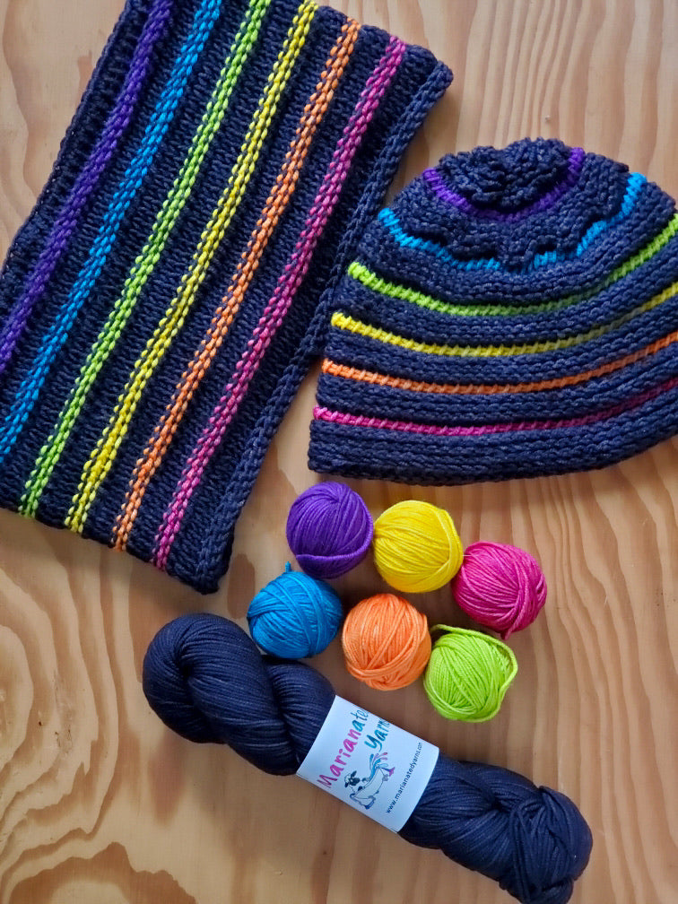You can also design your own Hat and Cowl set by choosing your own color of Playtime DK and a Jujubee DK Set