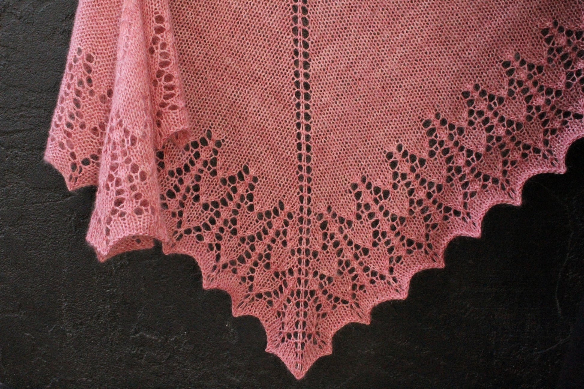 This shawl is knit double-stranded throughout. It's knit at a large gauge with fingering weight yarn and laceweight mohair/silk held together.