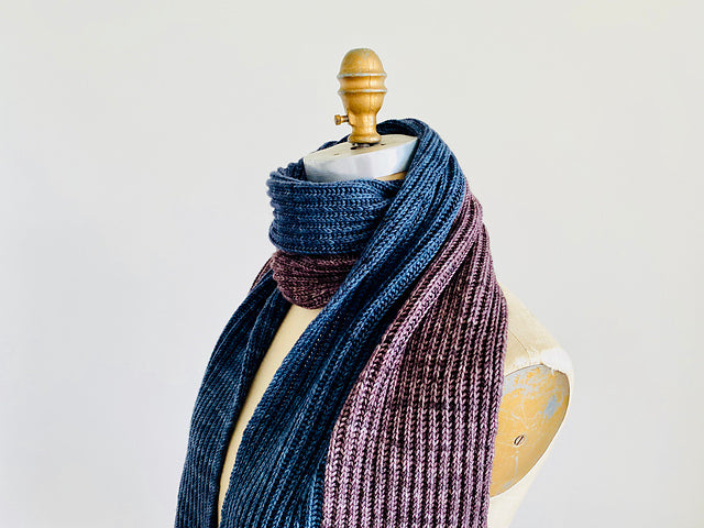 Fisherman’s Rib is a stitch pattern that yields a delightfully squishy, springy fabric. When coupled with a dense and delicious yarn like Marianated Yarns Playtime DK, the result is a scarf that is beautifully luxe and luxuriously beautiful! This pattern includes directions for a scarf that is one color, as well as a two-tone variation. The former is a super simple, guaranteed-you-won’t-forget–where-you-left-off project, perfect for Knitflixing. If you’re looking for something just slightly more adventurous, this pattern is a perfect introduction to intarsia, a wonderful technique for adding another hue to your project. The resulting bold, vertical stripes are a terrific way to play with color! The pattern is not included.