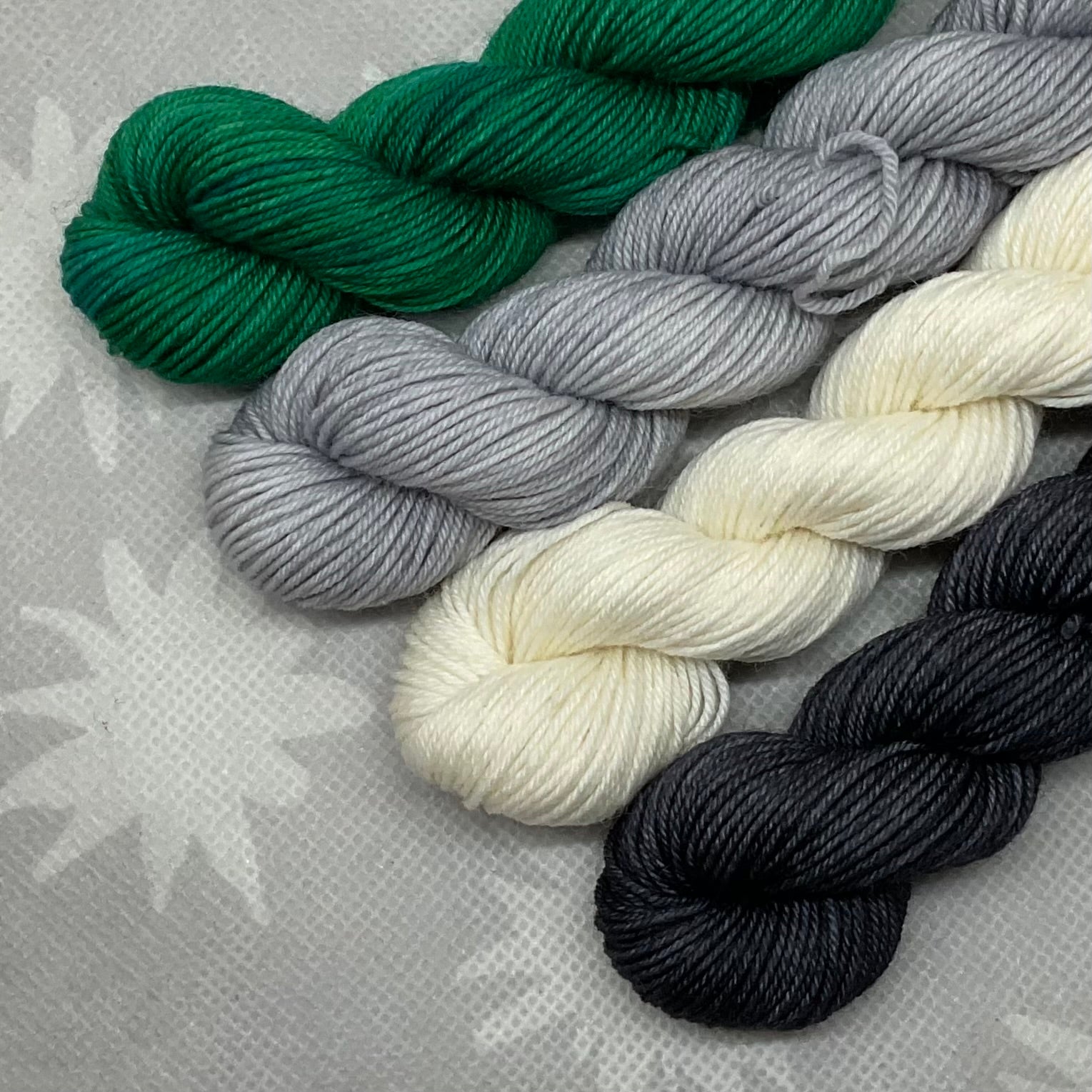 The set includes yarn to knit Gnandad's Grand Adventure The pattern is not included. Please note there is no exact set that matches the photos. The set colors were designed to coordinate the last year’s Dec MKAL - Gnana’s Visit