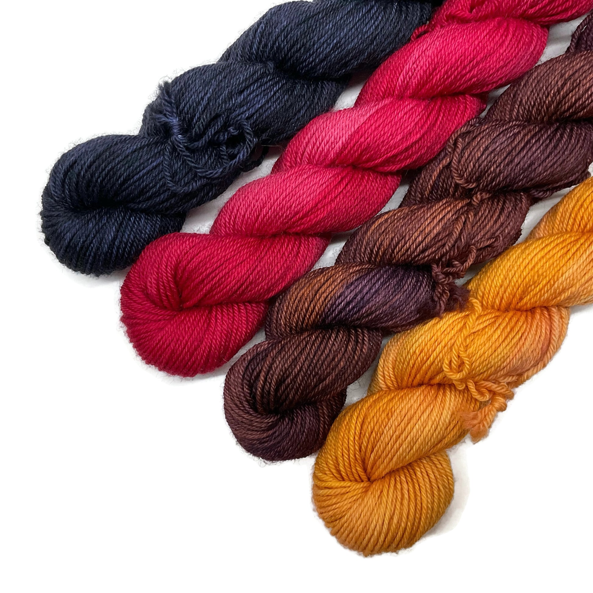 - Four Venti Mini skeins of hand dyed yarn - 75% Superwash Merino / 25% Nylon. Approx 20g / 90+ yards each