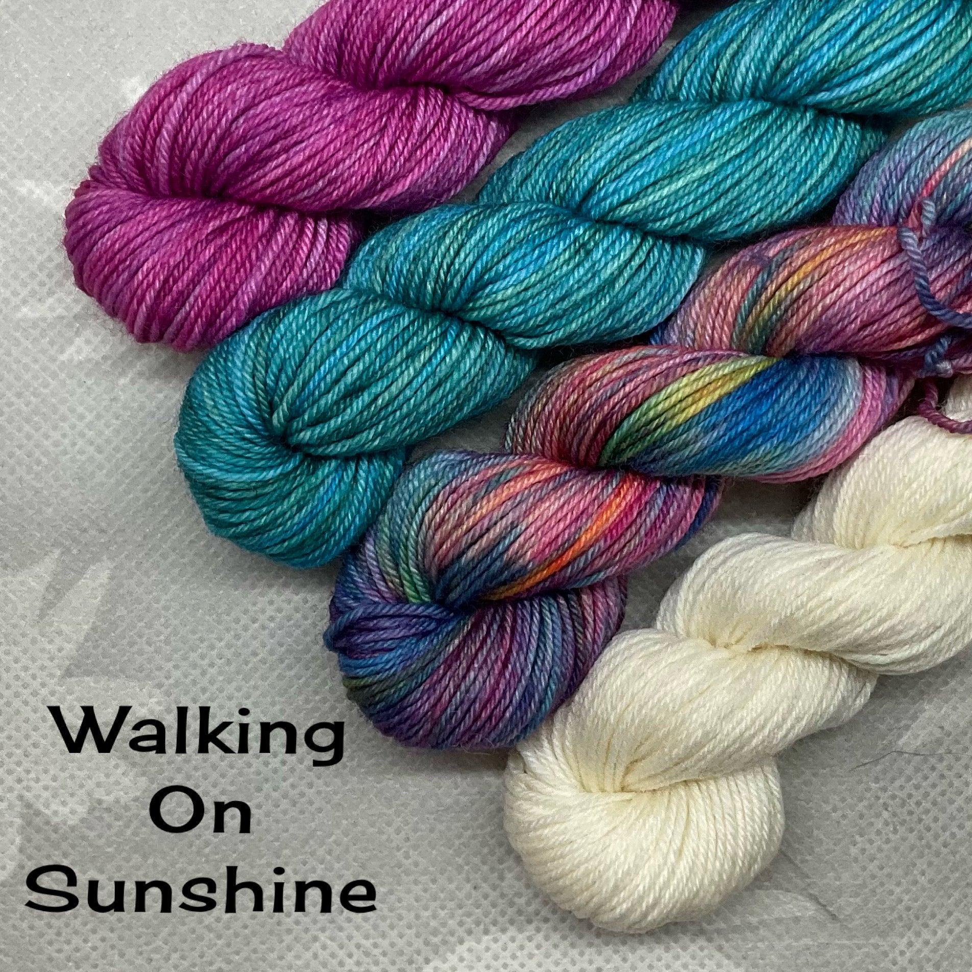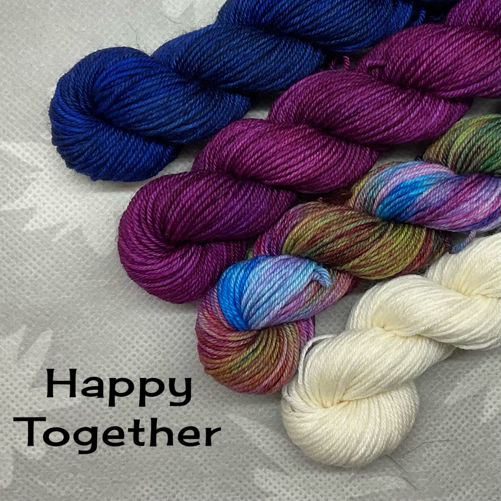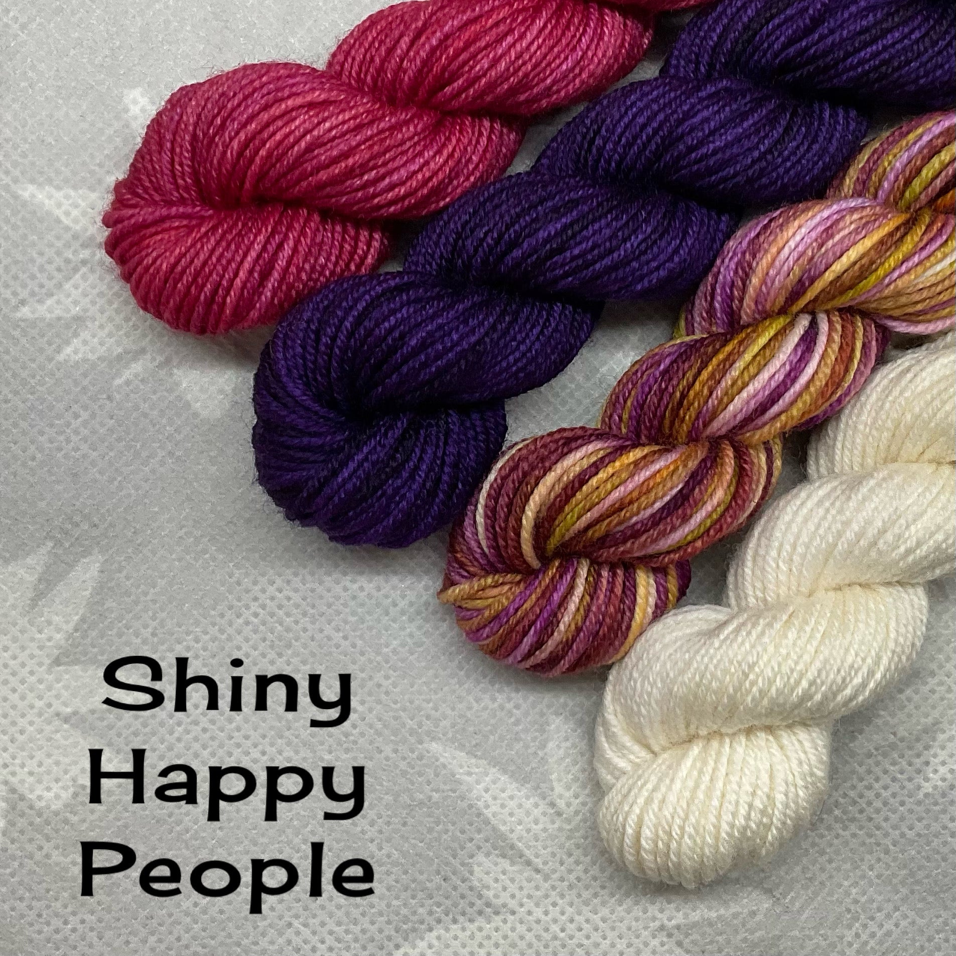 - Four Venti Mini skeins of hand dyed yarn - 75% Superwash Merino / 25% Nylon. Approx 20g / 90+ yards each. This is the same base as Practicality 75/25