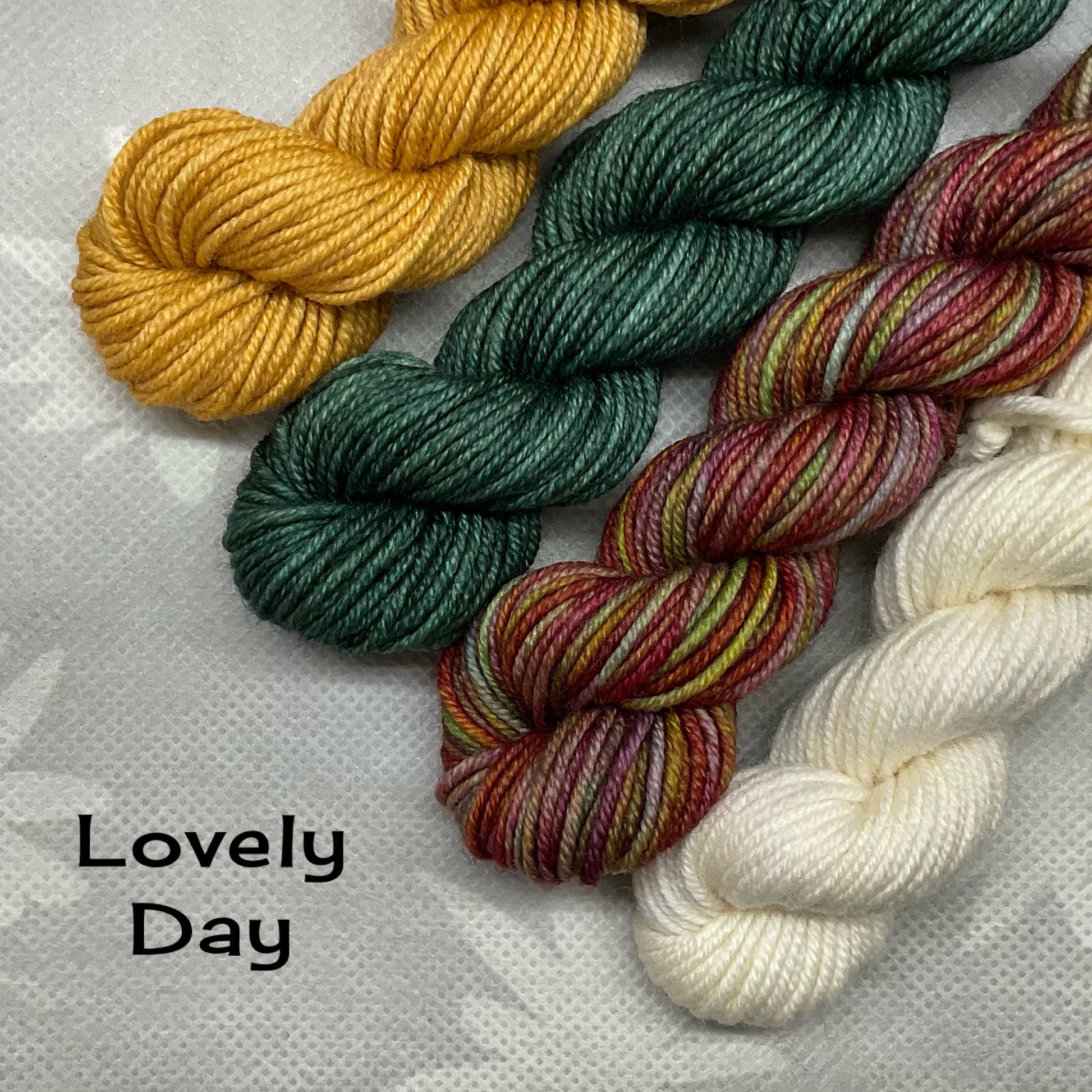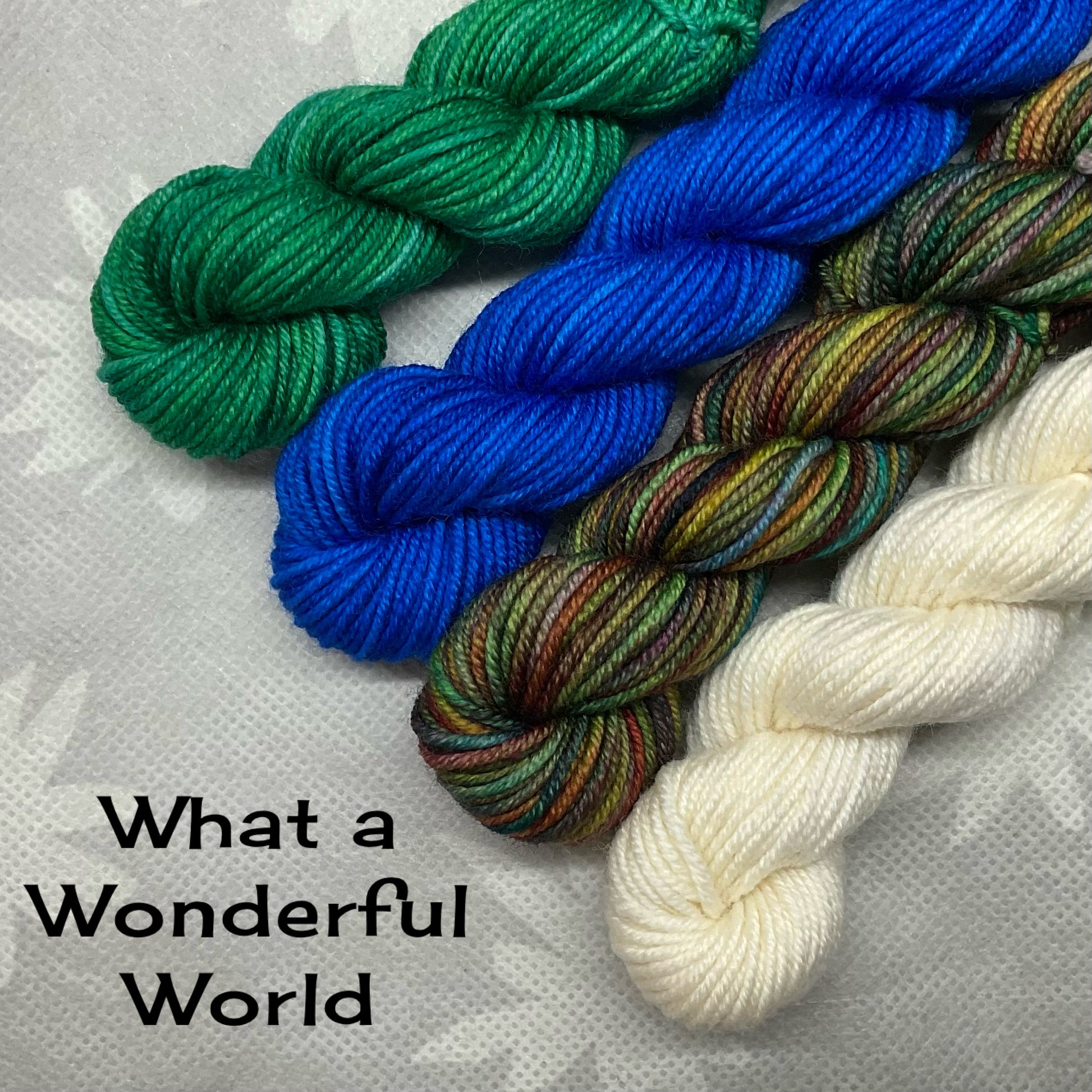 - Four Jujubee Mini skeins of hand dyed yarn - 100% Superwash Merino. Approx 20g / 54 yards each. This is the same base as Playtime DK
