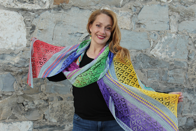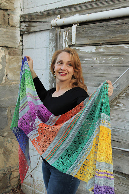 The set includes yarn to knit the shawl as shown. The pattern is not included.