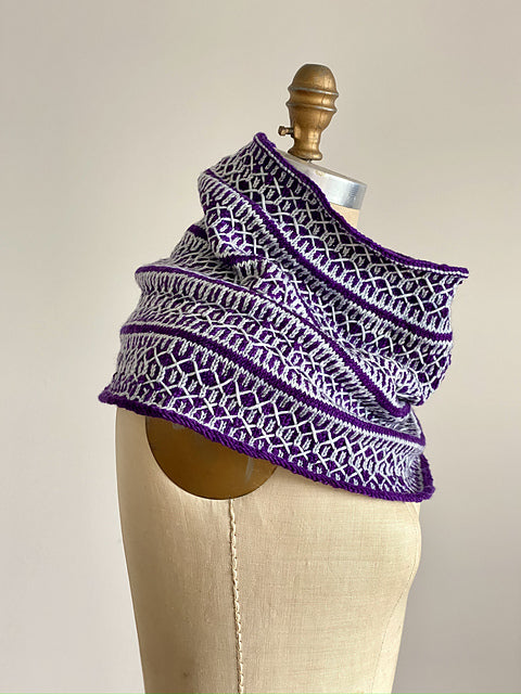 Interval Training is a unique design, combining knitted colorwork with embroidery. The merger of these two art forms yields a gorgeous, eye-catching cowl. The pattern is a perfect way to play with color, whether it be using just two colors for maximum impact or a gradient set for a more subtle shift in hues. The pattern is not included.