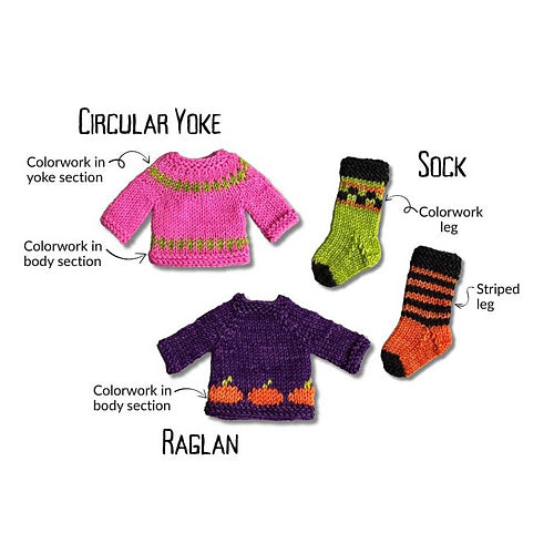 Printed pattern also includes a ravelry download code. Yarn, mini sweaters and mini socks are not included.