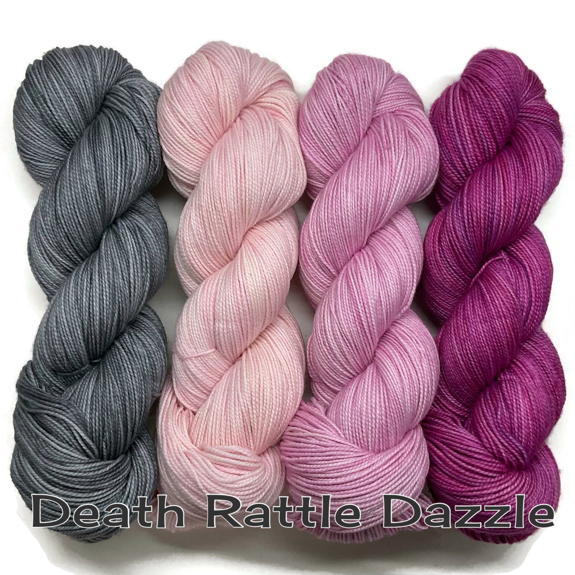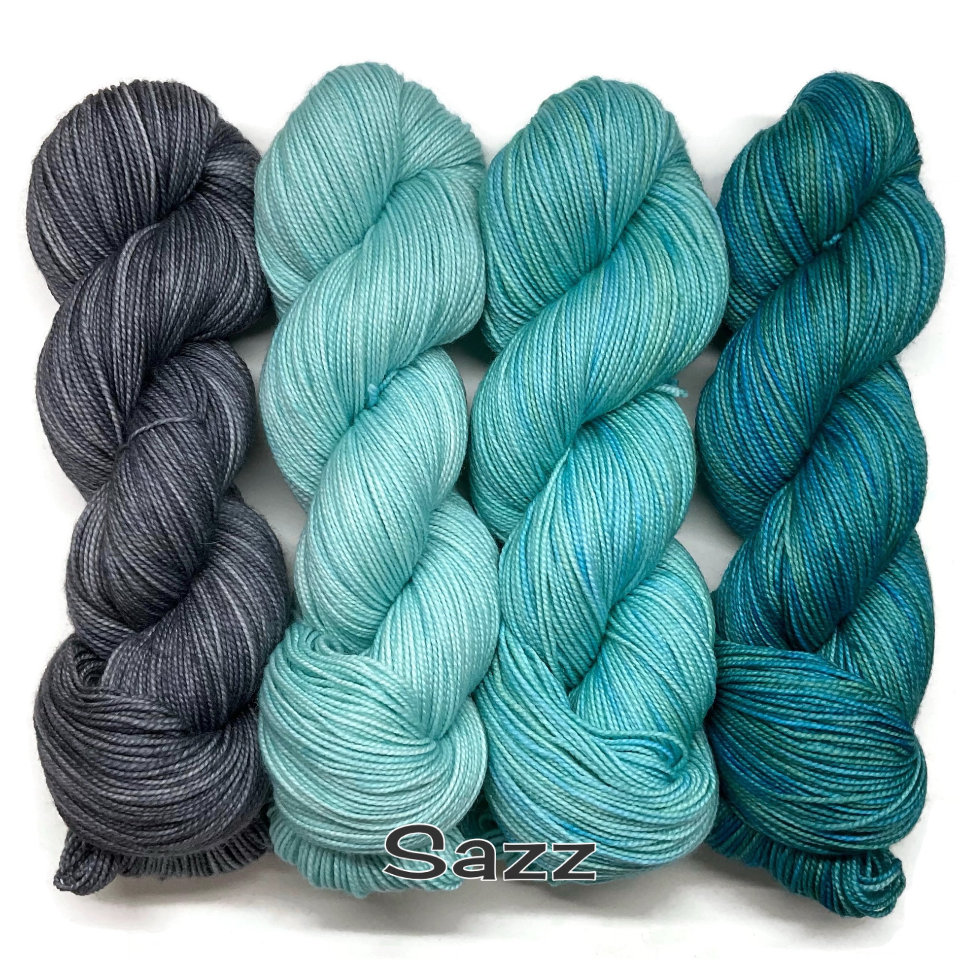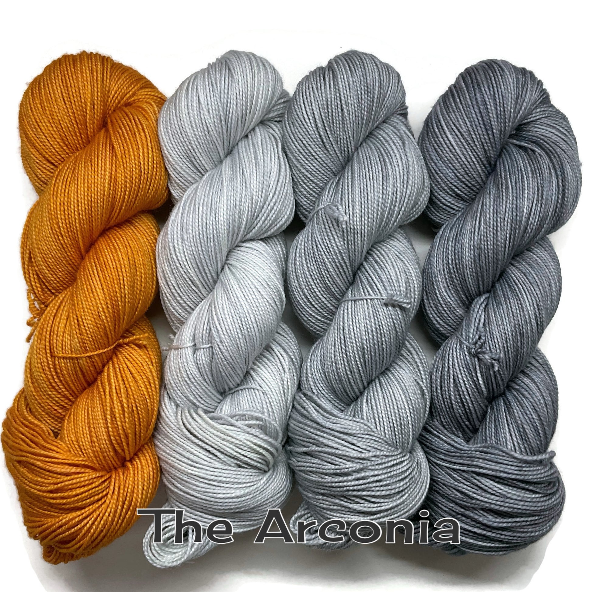 Each set for the Only Yarn In The Building MKAL includes four full skeins of Scrumptious HT to knit the mystery shawl. Each skein is 400 yards 80% Superwash Merino / 10% Cashmere / 10% Nylon. The pattern is not included.