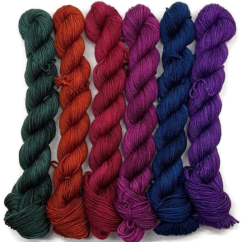 Fingering Weight - Six mini skeins approx 93 yards each for a total of approx 558 yards