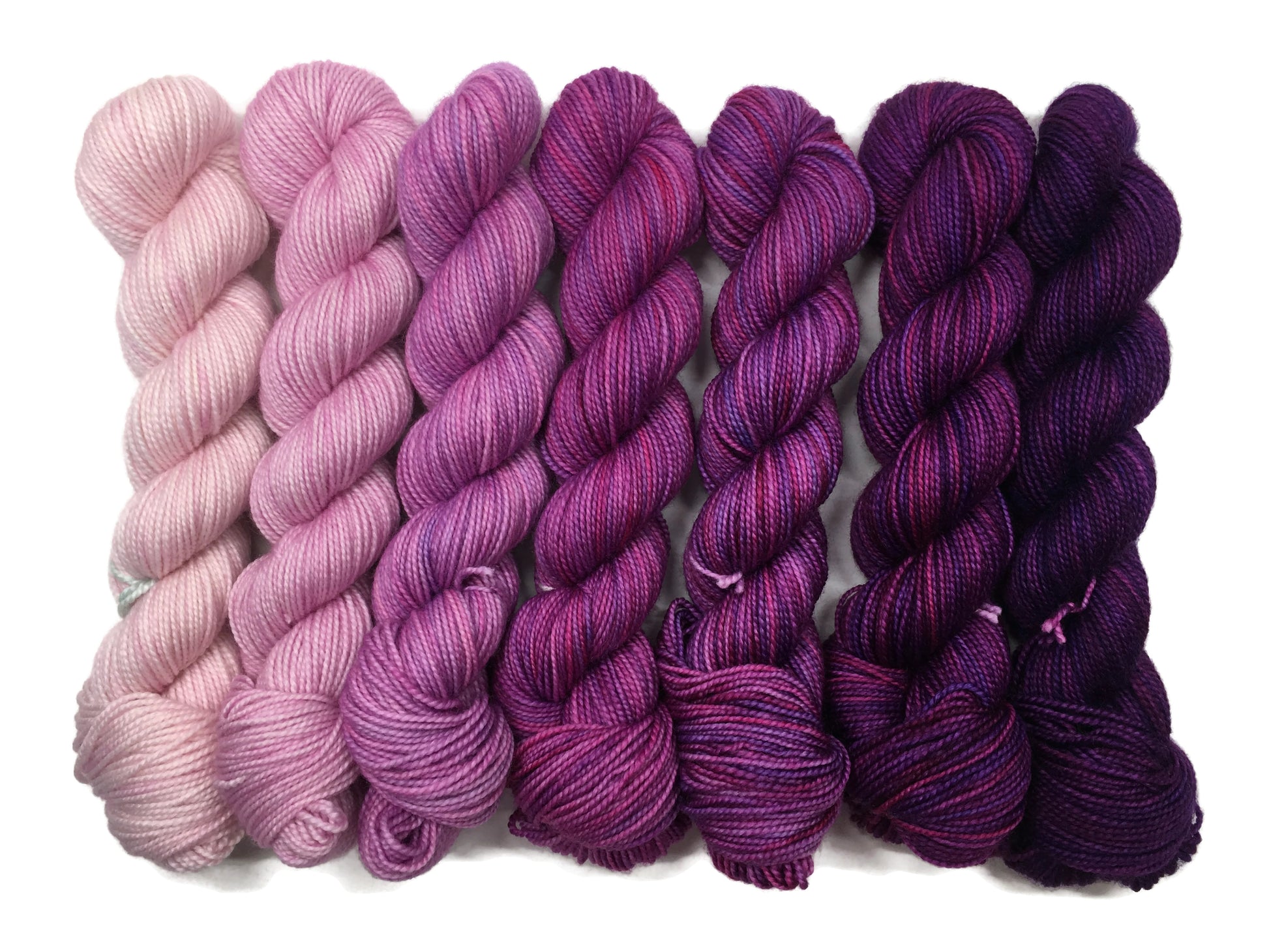 Fingering Weight - Seven mini skeins approx 93 yards each for a total of approx 651 yards.