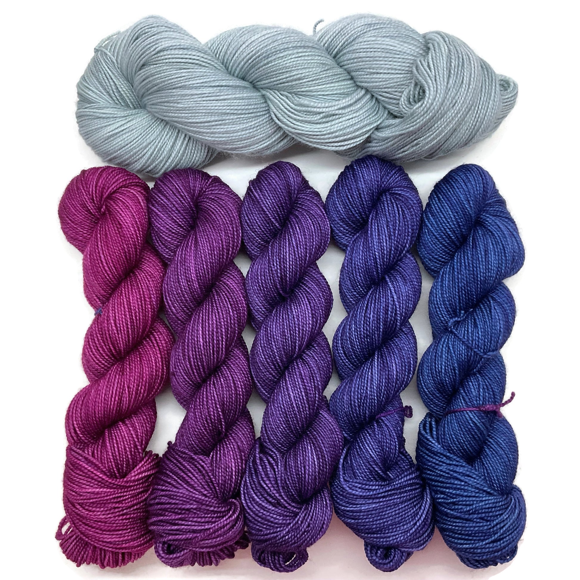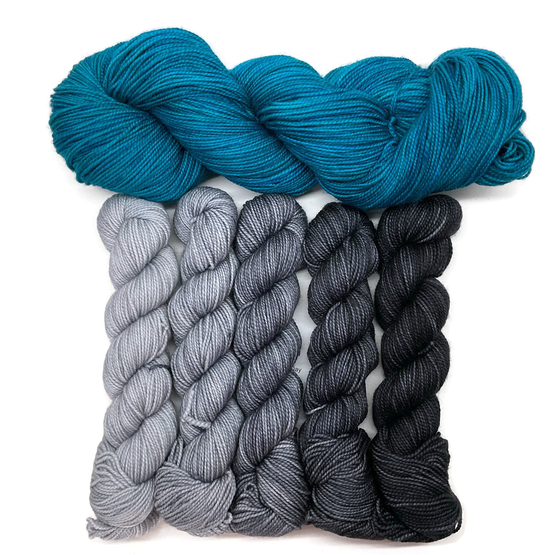 - 5 skein Stormy Skies Ahead set - Morning Mist / Drizzly Day / Steady Rain / Torrential Downpour / Build an Ark