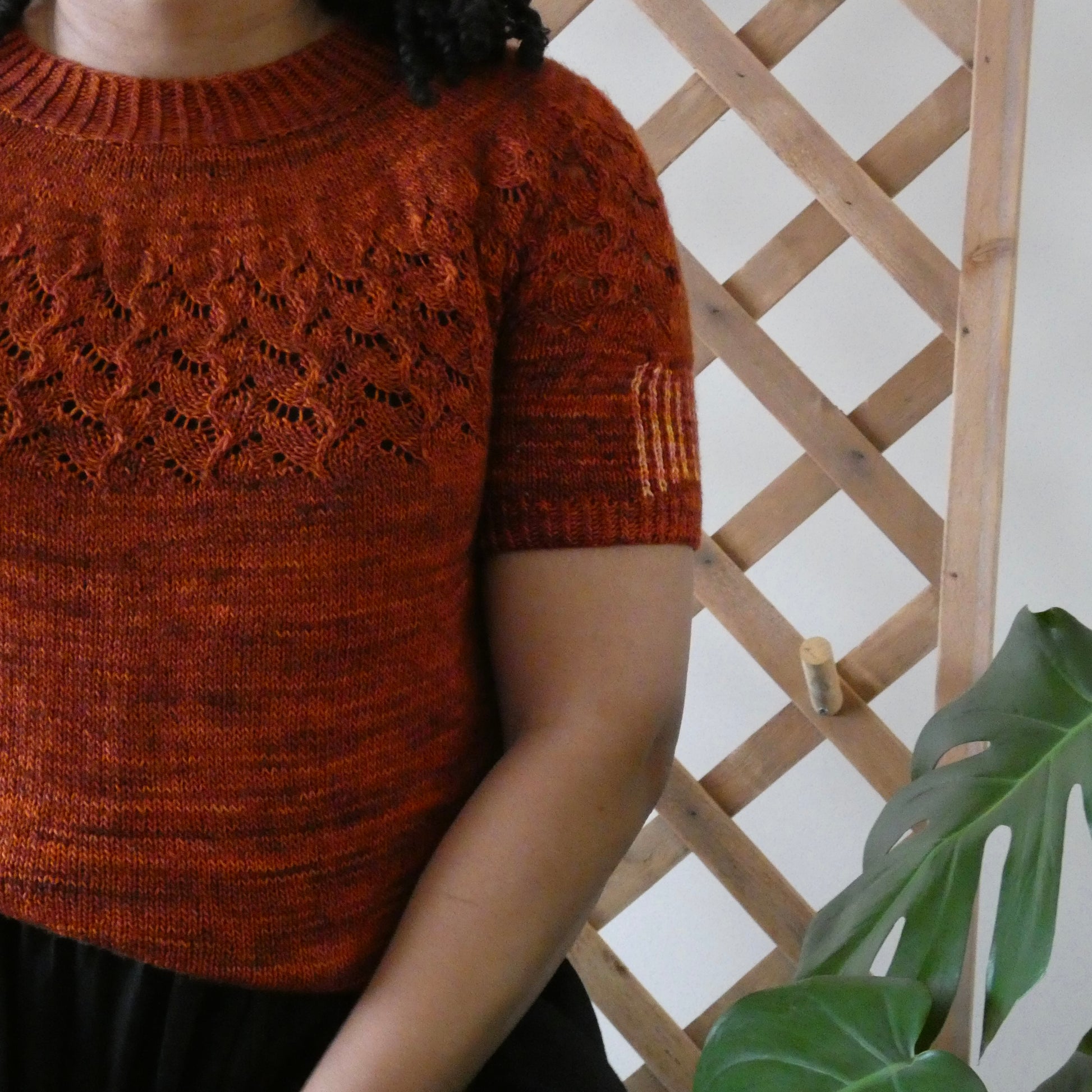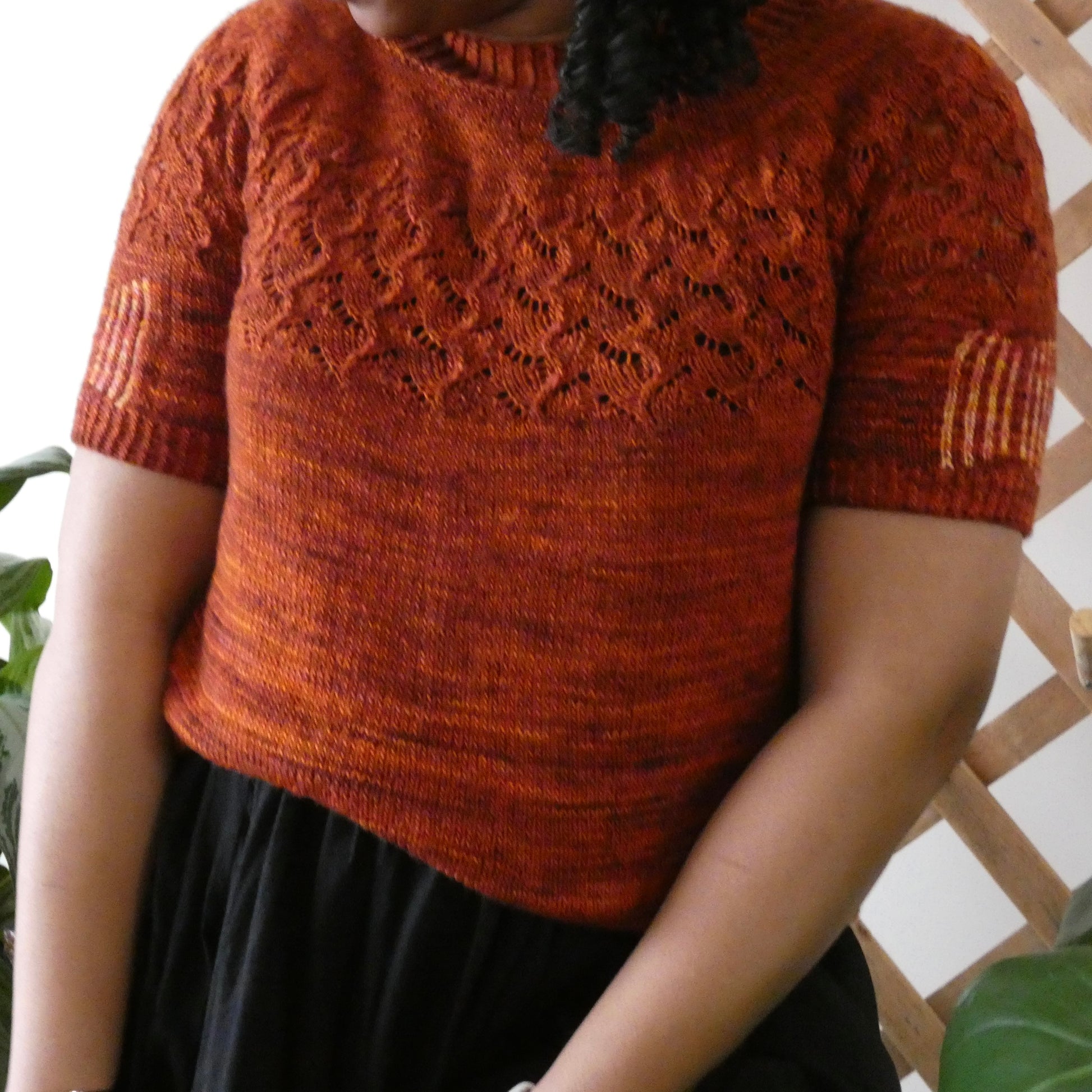 Tequila Sunrise is knit seamlessly from the top down and features a beauitful lace yoke with a fun colorwork sleeve detail that provides a pop of color. With an easy relaxed fit, Tequila Sunrise has a slightly cropped length which can be easily adjusted to suit your preference.